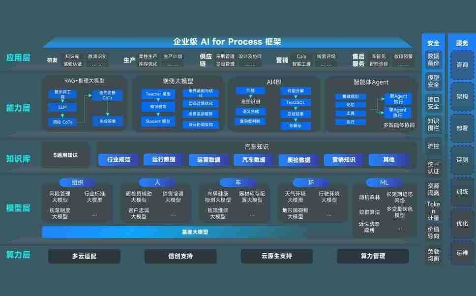 NG集团问学智车解决方案是一套基于AI技术的汽车行业智能化系统,,,覆盖从底层算力到顶层AI应用的全栈方案。。。。方案由算力层、、模型层和应用层组成:算力层,,,,方案支持多种一体机配置,,,,具备云端灵活部署、、、、多云适配以及动态优化计算资源的能力;模型层,,NG集团问学平台版提供了企业级AI应用一站式构建与管理平台,,支持基于后训练强化技术的汽车企业专属模型的训练、、、、评测和运营;应用层,,NG集团问学DeepSeek版提供包括超级员工、、、、智能招采、、智能营销、、智能客服、、AI for BI等一系列解决方案,,,可助力汽车行业实现数字化转型,,让管理更智能、、、、响应更敏捷。。